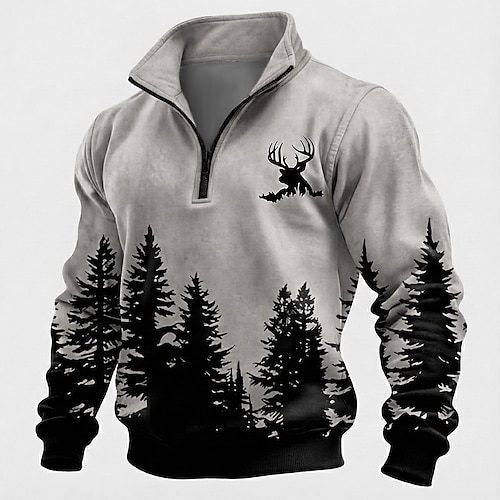 Per uomo Cervo Felpa Pantaloni Tattici Vintage Retrò Da caccia Collo alla coreana All'aperto Lavoro Regalo Blu chiaro Cachi Grigio Cerniera Autunno Inverno progettista S M L XL XXL XXXL
