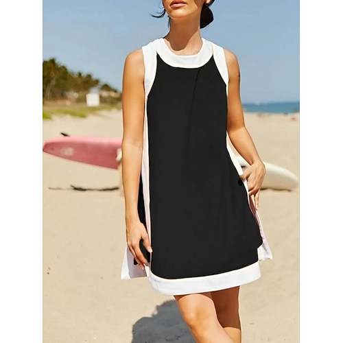 Per donna Set di gonne Manica Corta Girocollo Semplice Foro Elegante Moda Casuale Quotidiano All'aperto Blu Nero Bianco Estate Vestibilità regolare