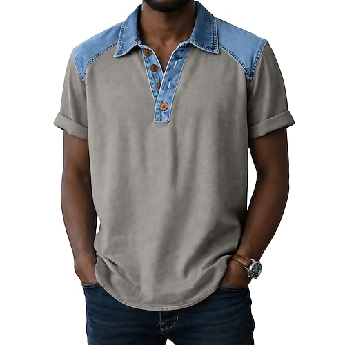 Per uomo Polo Camicia di Jeans Casuale Lavoro Bavero Manica Corta Essenziale Moderno Blocco di colori Patchwork Bottoni Primavera Estate Blu Nero Bianco Blu marino Marrone Verde Polo