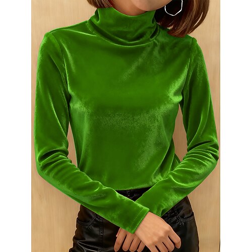 Per donna Maglietta Tinta unica Grafico Elegante Vintage Moda Manica Lunga Dolcevita Top Regolari Quotidiano Uscire Weekend Stampato A Strati Vino Blu Reale Viola Oro Verde Autunno Inverno