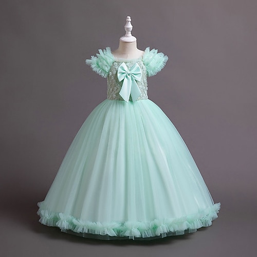 Abito da damigella d'onore bambina Ragazze Abito formale Abiti da sposa Feste Matrimonio Formale Adorabile Principessa Bello Patchwork Rete Tinta unica Maniche Corte Girocollo Champagne Rosa Dai 4