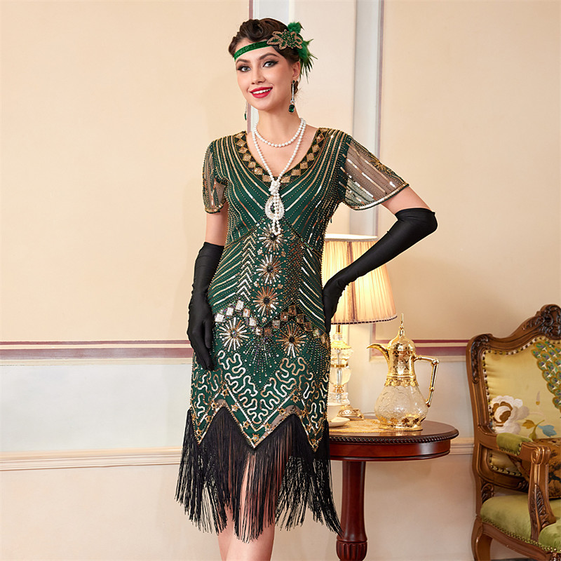 Retro Vintage Roaring 20s 1920s Flapper Dress Dress Outfits The Great Gatsby Sequins Tassel Fringe Fancy Dress Women's Party / Evening Masquerade Adults' Dress Gloves Stockings Spring Summer All