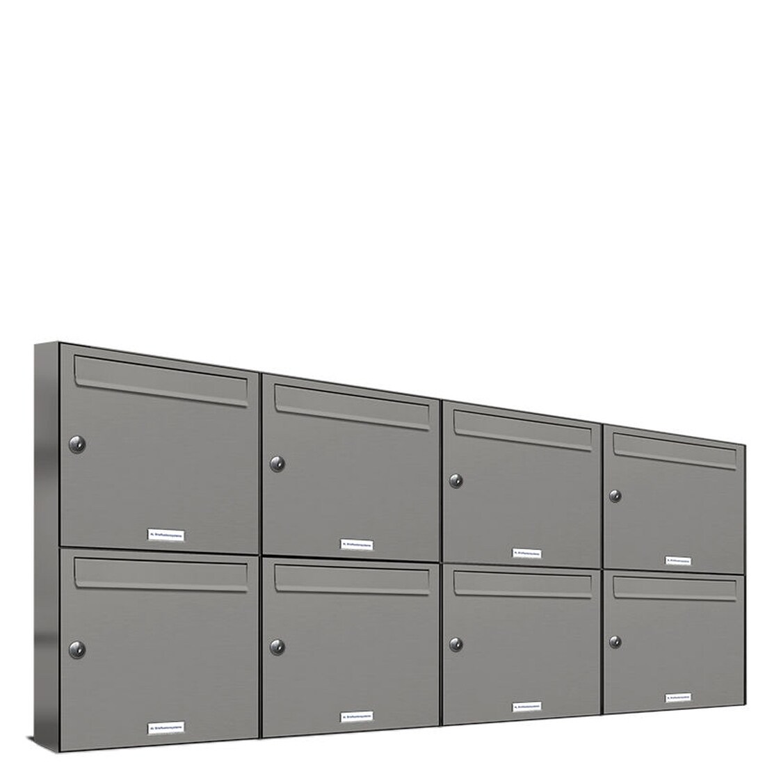 AL Briefkastensysteme 8 Fächer Premium Wand Briefkasten Anlage A4, in RAL 9007 Aluminium Grau und wetterfest, Artikelnummer: 331P8EA4