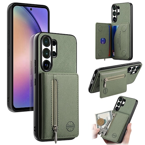 Handy Hülle Handyhüllen Für Samsung Galaxy S26 S26 Plus S26 Ultra Rückseite Brieftaschenhülle Mit Ständer Reisverschluss Ständer Retro TPU PU-Leder
