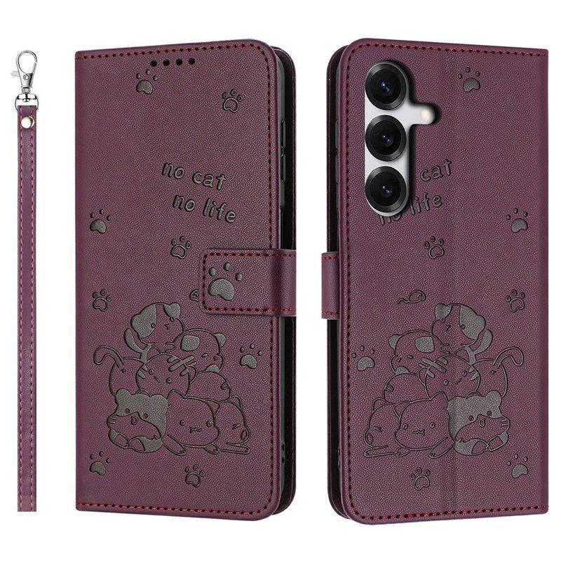 Plånboksfodral för Samsung Galaxy S26 Konstläder med rem - Vinröd