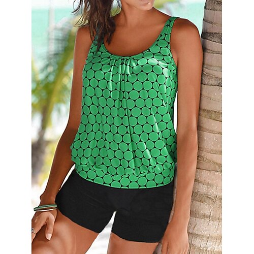 Costume da bagno da donna Tankini 2 pezzi Shorts Controllo della pancia Alta vita Slim Senza schienale Abbigliamento da spiaggia Pois Collo a U Senza maniche