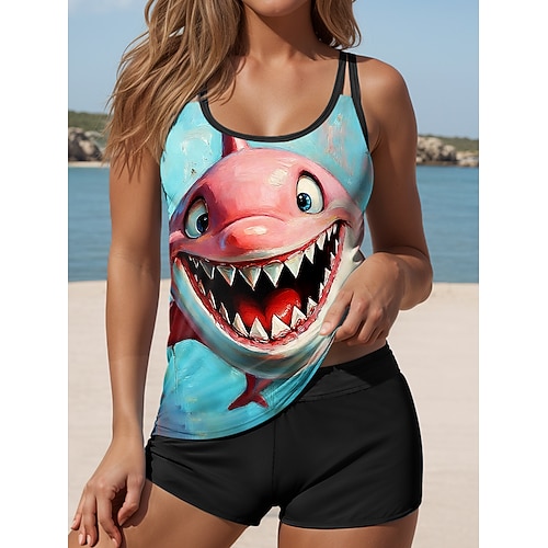 Per donna Costumi da bagno Tankini Due pezzi Vita alta Costume da bagno Senza schiena Vacanza Abbigliamento da Spiaggia Grafico Animale Collo a U Senza Maniche Costumi da bagno