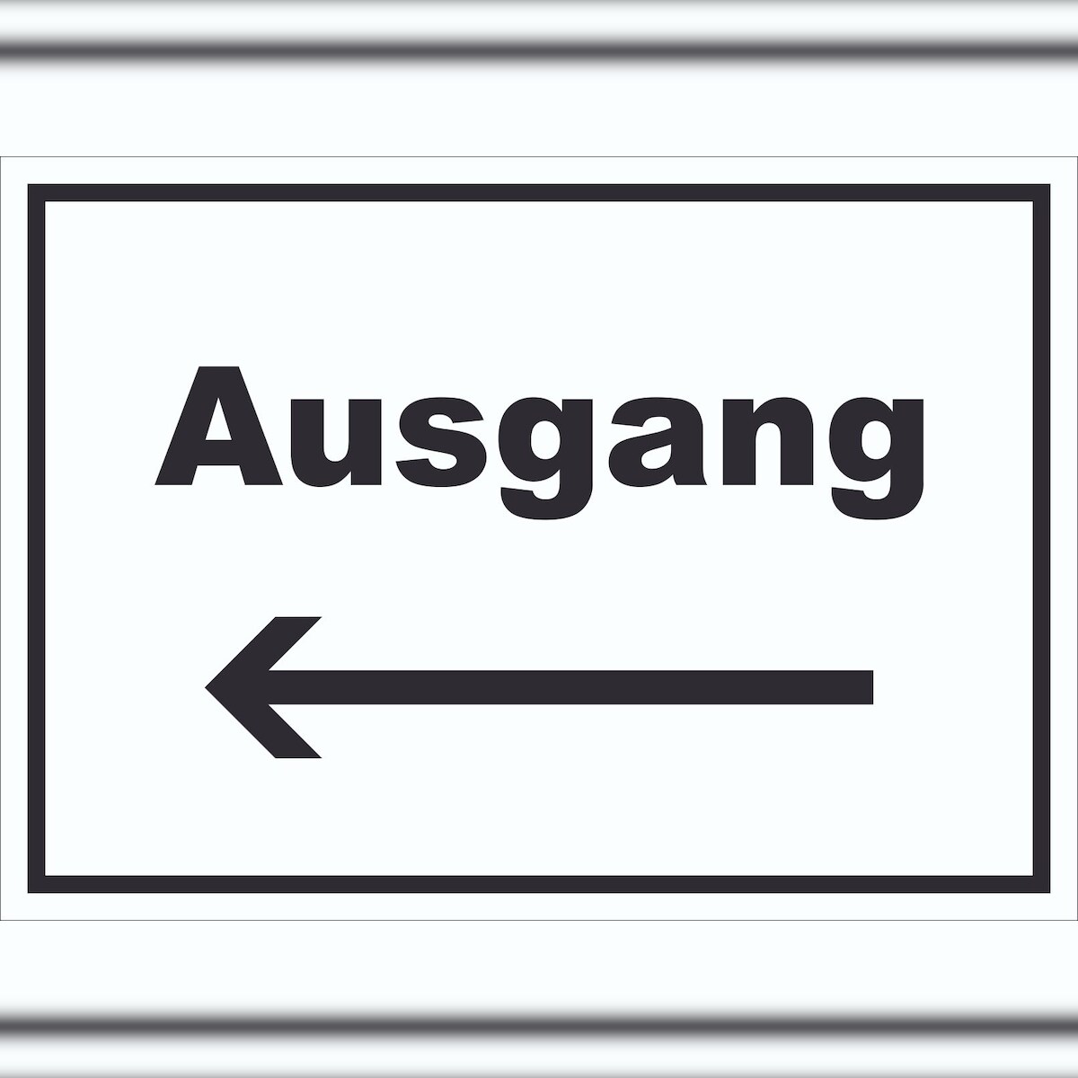 HB-Druck Ausgang Schild mit Text und Richtungspfeil links Exit Schluss waagerecht A1 Rückseite selbstklebend