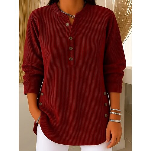 Per donna Camicia Blusa Tinta unica Essenziale Informale Manica lunga A V Top regolari Giornaliero Bottoni Grigio Autunno Inverno