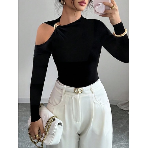 Per donna Blusa Tinta unica Elegante Casual Manica Lunga Asimmetrico Top Regolari Quotidiano Patchwork Nero Vino Cachi Primavera Autunno