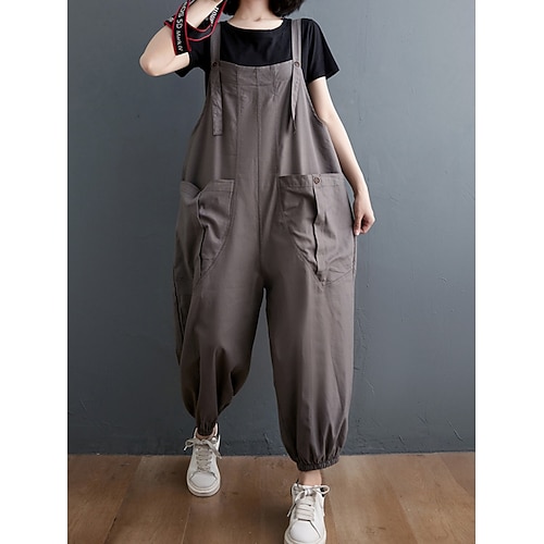Per donna Normale Tuta Attivo Tinta unica Senza Maniche Girocollo Tasca Quotidiano Vacanza Vestibilità comoda Nero Cachi Grigio Estate