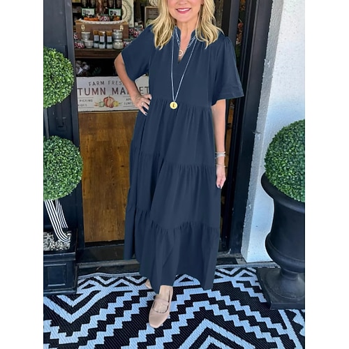 Per donna Abito maxi Abito Estivo Casual Quotidiano Vestibilità comoda Semplice Manica Corta Scollo a V blu navy Nero Vino Fucsia Estate Primavera