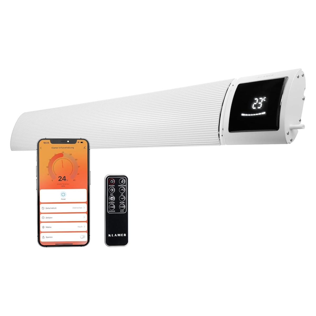 KLAMER Infrarotheizung 2600 W – WLAN Heizstrahler mit App- & Timer, Decken- & Wandmontage, Fenster-offen-Erkennung, Überhitzungsschutz, leise Strahlu…
