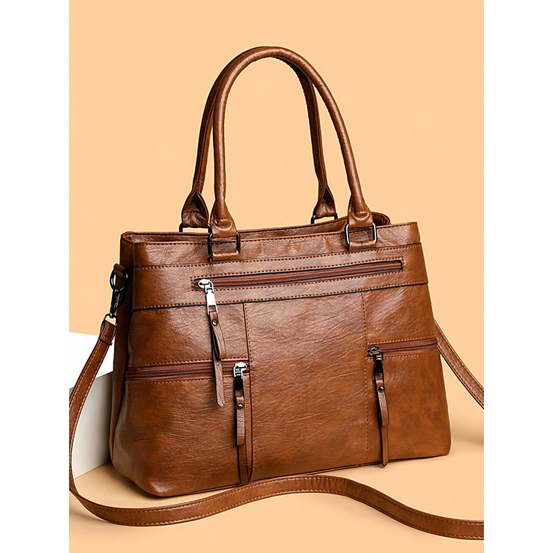 Women's Large Faux Leather Shoulder Tote Bag with Multiple Pockets, Stylish Handbag for Work, Travel and Everyday Use