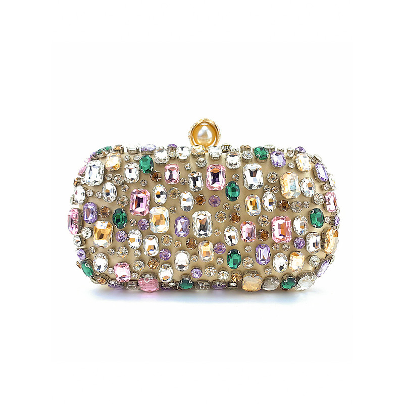 Women's Polyester Clutch Bag with Gemstone Embellishments, Chain Shoulder Strap, Large Capacity, Multiple Colors – Perfect for Weddings and Evening Parties