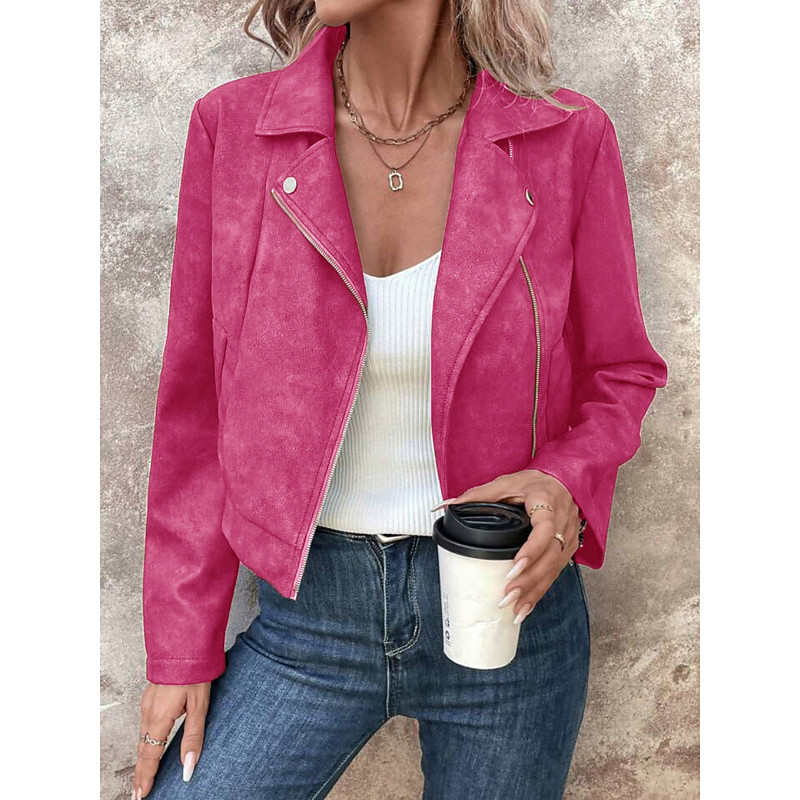 Women's Casual Jacket Comfortable Breathable Zipper Casual Plain Vacation Street Casual Daily Wear Zipper Short Turndown Regular Fit Long Sleeve Outerwear Pink Fuchsia Brown Spring Fall