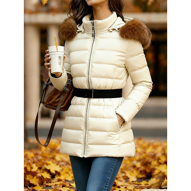 Women's Quilted Jacket Padded Jacket Casual Jacket Warm Comfortable Zipper Pocket Faux Fur Trim Fashion Casual Plain Street Casual Daily Wear Going out Zipper Regular Hooded Regular Fit Long Sleeve