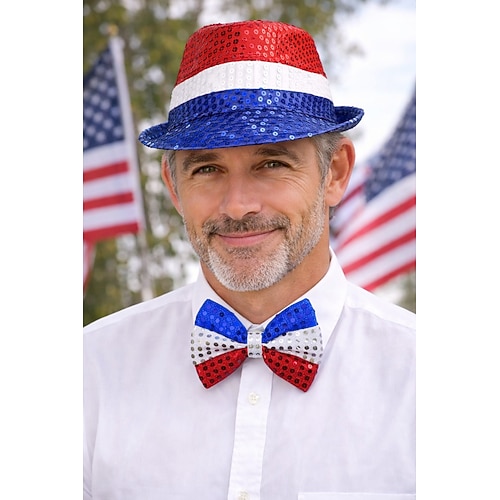 Americano 250 250° anniversario USA Zio Sam Carnevale Cappello Panama Papillon Cappello a cilindro Patriotico Innovativo Paillettes Adulti Unisex Giorno dell'Indipendenza / 4 Luglio 4 Luglio Feste