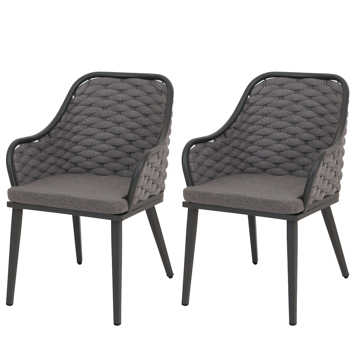 Proregal 2er-Set Aluminium-Gartenstuhl | HxBxT 84x59x63 cm | Sitzhöhe 46cm | Olefin (200 g/m²) Seilgeflecht Rope | Anthrazit Kissen Dunkelgrau | Outdoor Stuhl