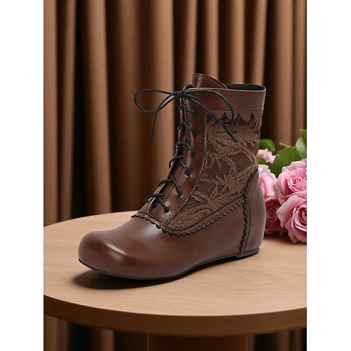 stivali da donna in similpelle marrone con lacci vittoriani e tacco basso - classici ed eleganti per cosplay, feste in maschera e abiti di ispirazione vintage