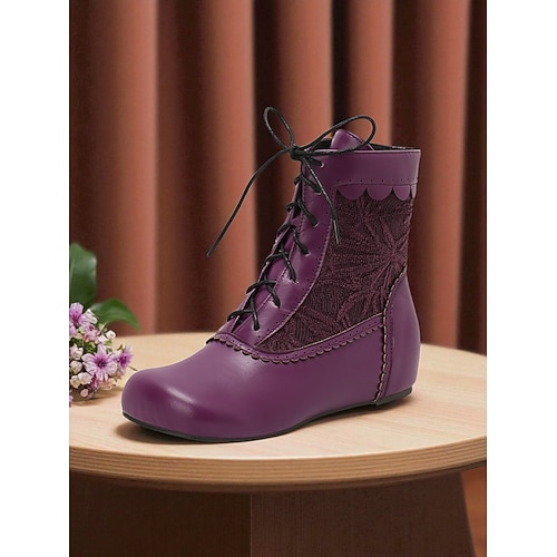 stivaletti alla caviglia viola con lacci da donna e pannelli ricamati - stivaletti bassi in stile vittoriano edoardiano anni '90 per cosplay, festival autunnali e abiti di ispirazione vintage