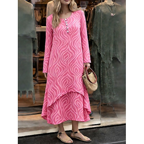 Per donna Abito Midi Abito a Tubino Casual Ferie Vestibilità comoda Grafico Geometrico Manica Lunga Girocollo Blu Giallo Rosa Cachi Primavera Autunno Inverno