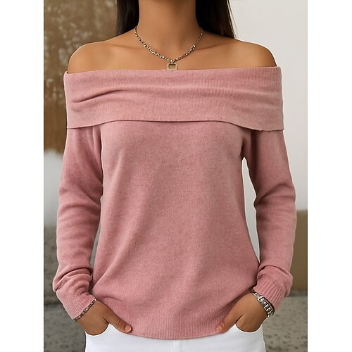 Per donna Felpa Elegante Moda Quotidiano A cappuccio Spalle scoperte Manica Lunga Top Regolari Maglia Rosa Beige Autunno Inverno