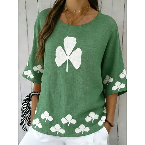 St. Patricks Day Damen Boho-T-Shirt T Shirt T-Shirt Grafik Vintage Stilvoll Ethnisch Kurzarm Rundhalsausschnitt Lange Oberteile Täglich Wochenende Urlaubskleidung Druck Hellgrün Grün Sommer Frühling