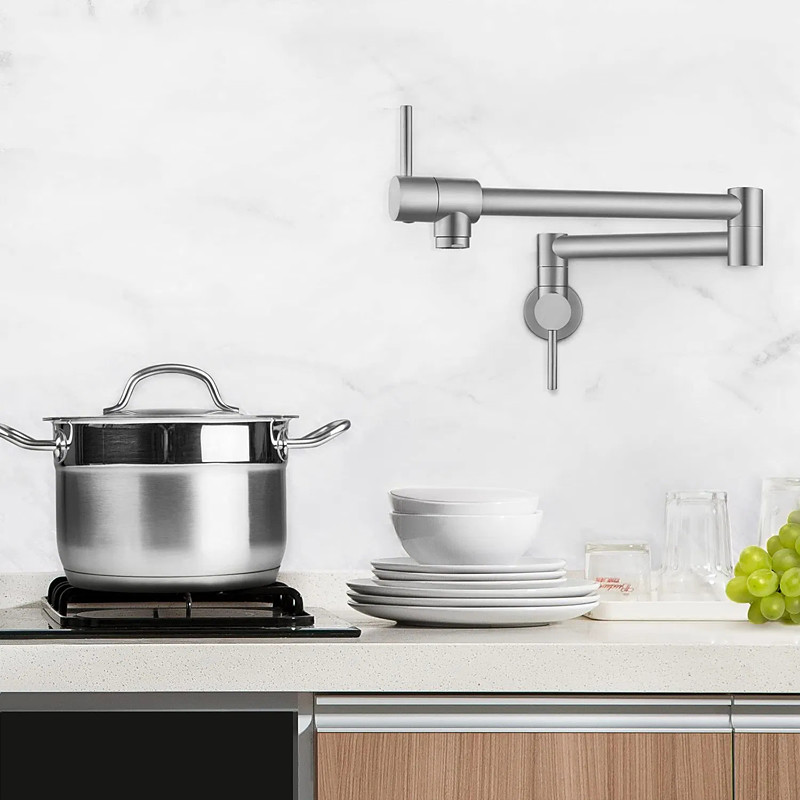 Kitchen Faucet,Wall Mounted Pot Filler Two Handles One Hole Chrome/Oil-rubbed Bronze/Nickel Brushed Foldable Pot Filler Wall Mounted Contemporary Kitchen Taps with Cold Water Only