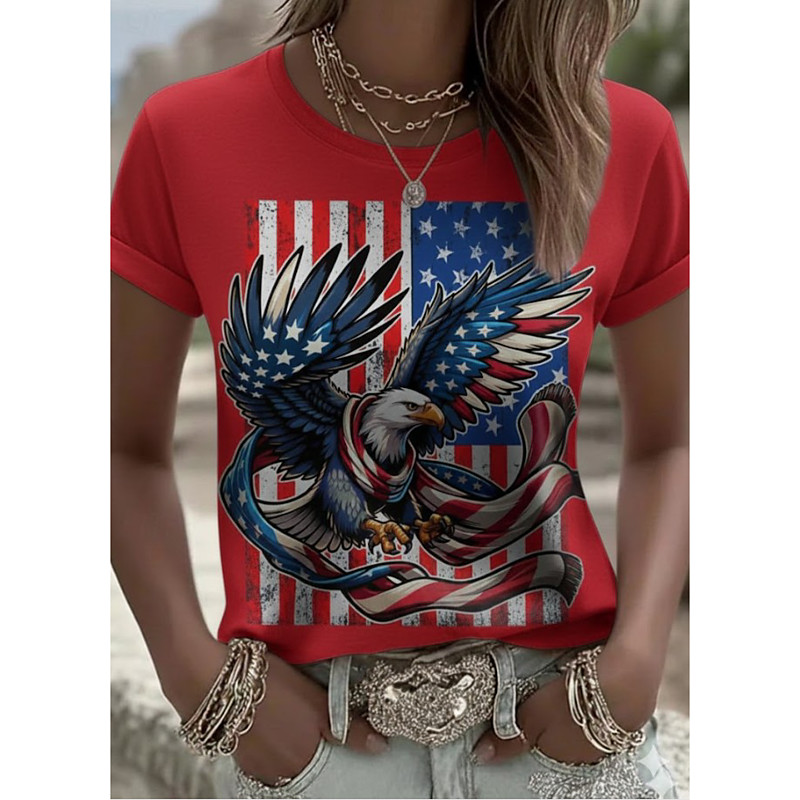 American Independence Day Women's T Shirt Graphic American Flag National Flag Vintage Stylish Classic Short Sleeve Crew Neck Regular Tops Daily Weekend Print Blue Black White Red Summer Spring