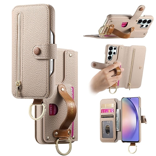 Handy Hülle Handyhüllen Für Samsung Galaxy S26 S26 Plus S26 Ultra Brieftaschenhülle Flip-Cover Reisverschluss Mit Handgelenkschlaufe Ständer Retro TPU PU-Leder