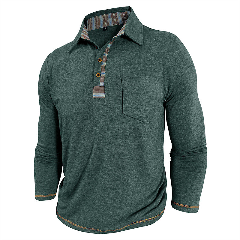 Men's Golf Shirt Golf Polos Shirts Work Casual Lapel Long Sleeve Basic Modern Color Block Patchwork Buttons Spring Fall Regular Fit Deep Green Black White Light Green Dark Blue Red Golf Shirt