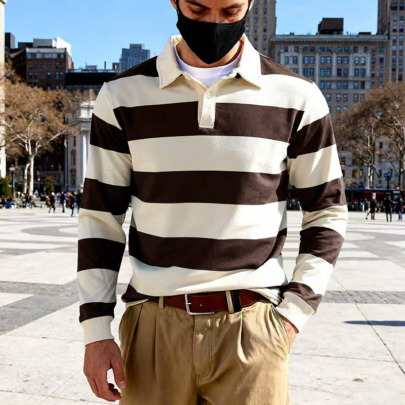 Men's Rugby Polo Shirts Golf Shirt Work Casual Lapel Long Sleeve Basic Modern Plain Buttons Spring Fall Regular Fit Navy Blue Brown Green Rugby Polo Shirts