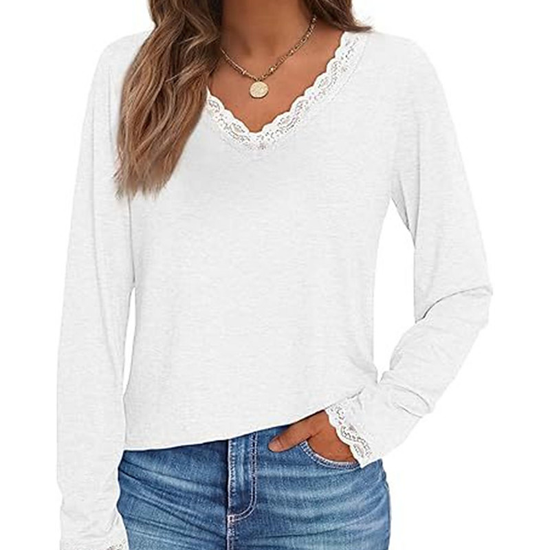 Women's Blouse Dressy Tops Lace Tops Solid Color Plain Elegant Vintage Ladies Long Sleeve V Neck Regular Tops Work Daily Holiday Lace Trim Draped Black White Wine Brown Green Fall Winter