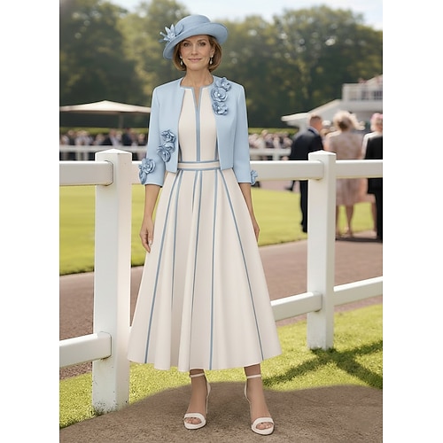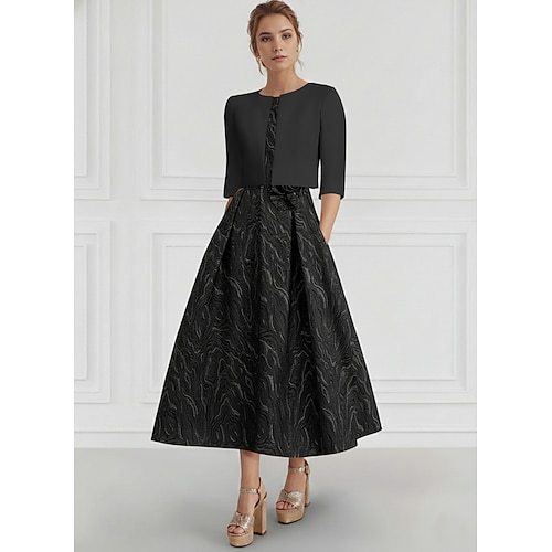 Due Pezzi Linea ad A Lunghezza alla caviglia Lunghezza Tè Abito da invitata a nozze Abito da cerimonia per signora Senza Maniche Manica 3/4 Scollo a Barca Elegante Semplice Casual Formale Ospite di
