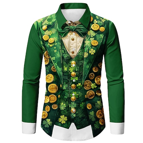 Camicia a quattro foglie di San Patrizio a maniche lunghe Astratta Festa Giorno di San Patrizio Primavera Autunno Camicia button up Verde