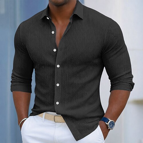 Herren Hemd Cordhemd Knopfhemd Schwarz Weiß Marineblau Blau Purpur Langarm Einfach Umlegekragen Outdoor Urlaub Button-Down Bekleidung Baumwolle Mode Streetwear Klassisch Lässig
