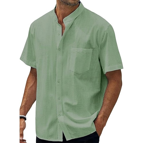 Per uomo Camicia Camicia di lino Camicia Estiva Abbigliamento da spiaggia Camicia con Bottoni Tinta unica Casuale Vacanza Nero Bianco Blu marino Azzurro cielo Manica Corta Colletto alla coreana