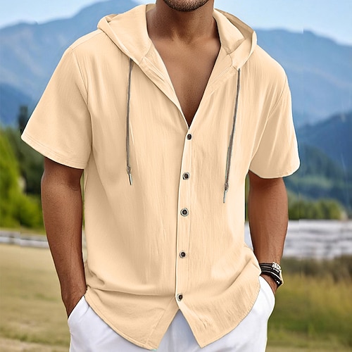 Per uomo Camicia Camicia di lino Camicia Estiva Abbigliamento da spiaggia Camicia con cappuccio Tinta unica Vacanza Ferie Nero Bianco Blu marino Verde Manica Corta Con Cappuccio Estate Primavera