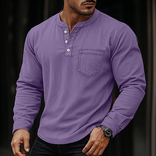 Per uomo Maglia Henley Camicia 100% cotone lavaggio acido Maglietta Manica Lunga Vintage Tinta unita Retrò Vintage Casual Henley Stile Vintage Lavato Henley Casuale Primavera Autunno Tutte le stagioni