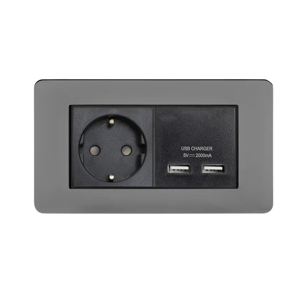 Soho Lighting Matt Black & Brushed Brass 2 Gang USB C+C Socket (13A Socket + 2 USB C 4.8A Ports) Black Insert