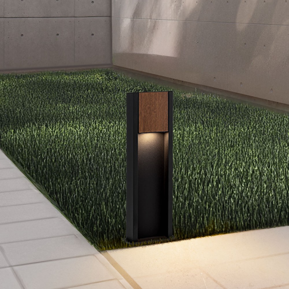 Nova Luce Kioo - lampe de jardin - 14 x 50 x 8 cm - 11W LED inclus - IP65 - noir sablé et bois