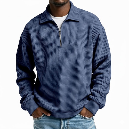 Per uomo Maglia Felpa a nido d'ape Maglione Felpa con zip corta Aalbicocca Nero Bianco Verde chiaro Borgogna Colletto Mao Semplice Tasca a marsupio Testurizzato Casuale Quotidiano Sport Outdoor