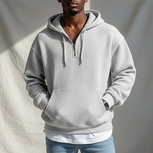 Per uomo Maglia Felpa a nido d'ape Felpa con cappuccio Maglione Felpa con zip corta Nero Bianco Blu marino Cachi Grigio chiaro Colletto Mao Semplice Patchwork Tasca a marsupio Testurizzato Casuale