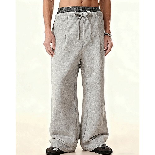 Herren Baggy-Jogginghose Jogginghose Hose Kordelzug Tasche Elastischer Bund Farbblock Komfort Sport im Freien Täglich Mode Lässig Schwarz Weiß Mikroelastisch