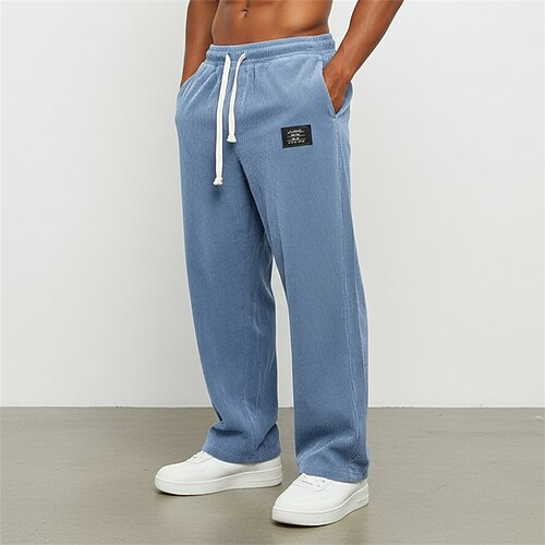 Herren Jogginghose Hose Cordhose Freizeithose Kordelzug Elastischer Bund Gerader Schnitt Einfach Komfort Volle Länge Täglich Sport im Freien Ferien Urlaub Mode Blau Schwarz Mikroelastisch