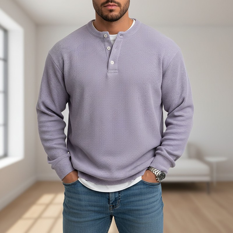 Men's Waffle T-shirt T Shirt Long Sleeve Henley Fall Fall Winter All Seasons Solid Color Textured Traditional / Vintage Casual Patchwork Casual Home Outdoor Light Blue Black Light Green Top Tee for