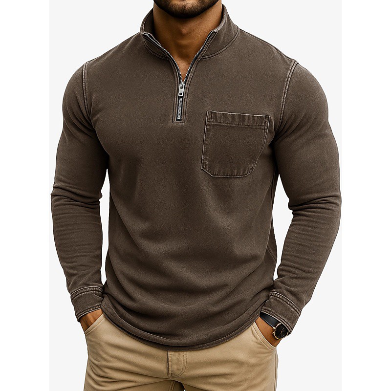 Men's T Shirt Tee Top Long Sleeve Shirt Long Sleeve Quarter Zip Spring Fall Plain Vintage Fashion Leisure Pockets Daily Outdoor Vacation Blue Black Light Green Top Tee for Men
