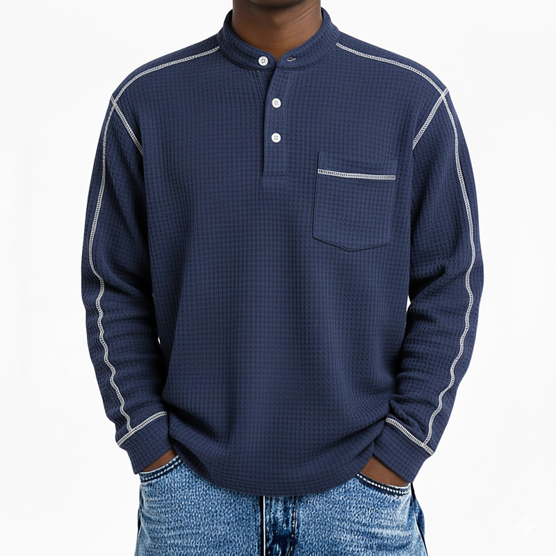 Men's Waffle T-shirt T Shirt Waffle Henley Shirt Long Sleeve Henley All Seasons Solid Color Casual Pockets Casual Home Outdoor Light Blue Light Green Red Top Tee for Men