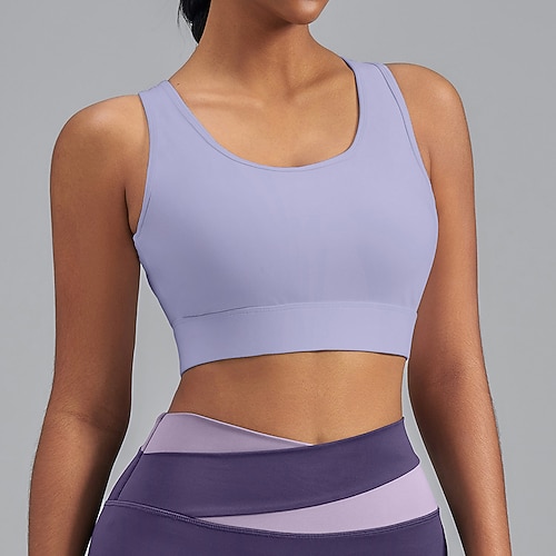Per donna Supporto medio Canotta con imbottitura Reggiseno da corsa Snello Top reggiseno Imbottito Palestra Esercizio Corsa Leggero Elastico Traspirante Nero Bianco Viola Tinta unita